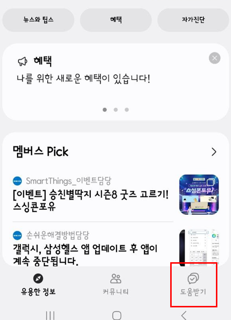 - 하단 메뉴에서 도움 받기를 선택합니다.