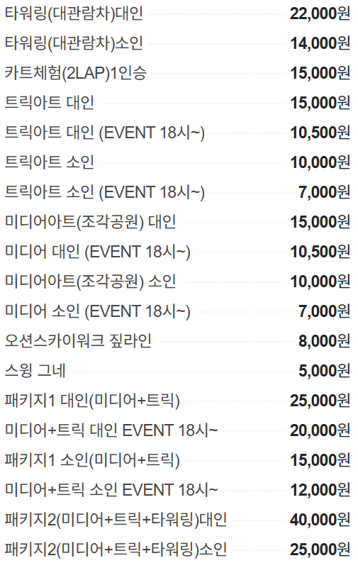 | 통합권 (둘 다) | 대인 30,000원 소인 20,000원 |