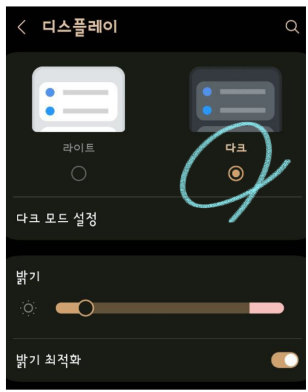 다크 모드는 눈의 피로도 줄여주고 밤에 폰 볼 때 눈부심도 덜하니까 일석이조예요ㅎㅎ