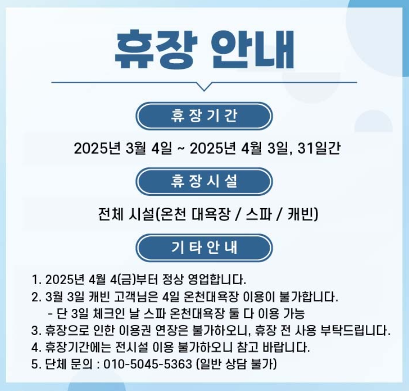 휴장기간은 2025/03/04 ~ 2025/04/03